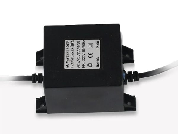 El transformador de 60W AC220V/12VAC con protección IP68  es ideal para conexiones de LED exterior o sumergible debido a su fuerte grado de protección.